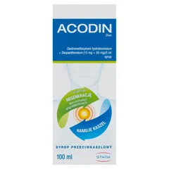 Ten lek zawiera w składzie substancję psychoaktywną (pseudoefedrynę, dekstrometorfan lub kodeinę), której sprzedaż w aptekach jest ograniczona na podstawie Rozporządzenia Ministra Zdrowia z dnia 16 grudnia 2016 r. (Dz.U. z 28.12.2016r. poz. 2189). Więcej informacji uzyskasz w aptece.